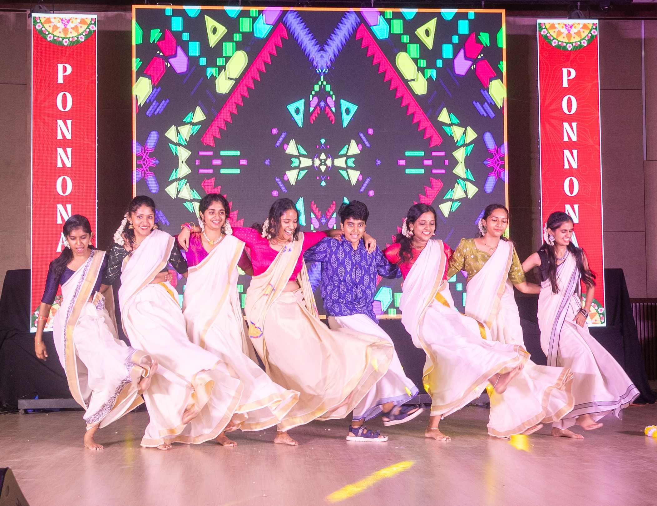 B.Tech Aerospace Engineering, expressing gratitude to the organizers, participants, and dignitaries. Following this, the traditional Onam Sadhya was served, bringing everyone together in the spirit of unity and festivity. The event drew to a lively close at 6:30 pm with a spectacular performance by Fejo & Team along with Adarsh DJ, which left the audience energized and joyful.